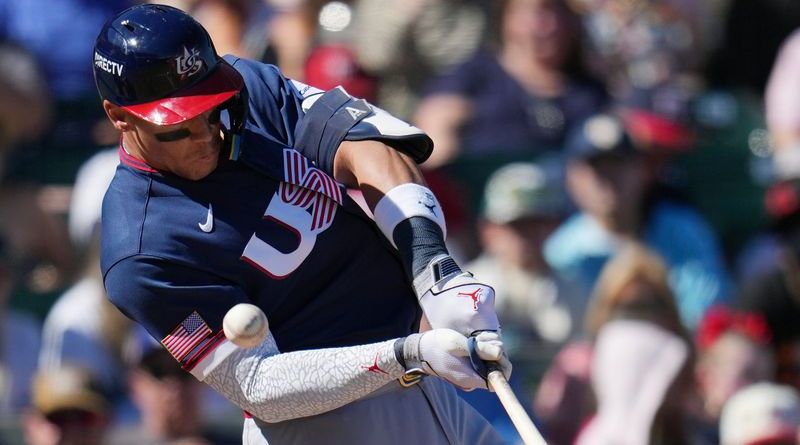 Fue parte de una jornada de cinco vuelacercas para Estados Unidos en una victoria por 14-4. Paul Goldschmidt, Will Smith y Byron Buxton también se volaron la barda. Brice Turang conectó dos dobles e impulsó dos carreras.