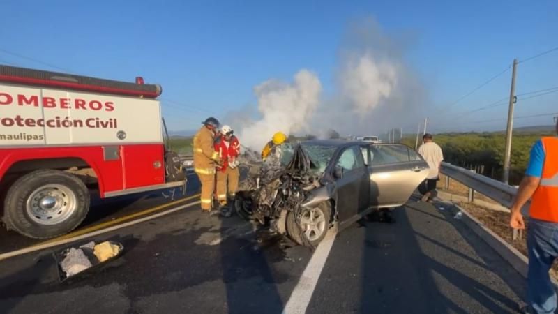 Un choque frontal seguido de un incendio se registró el domingo en la carretera federal que une Ciudad Victoria con Tampico, a unos 30 minutos al sur de la capital de Tamaulipas, con un saldo de cuatro personas fallecidas y seis lesionadas.