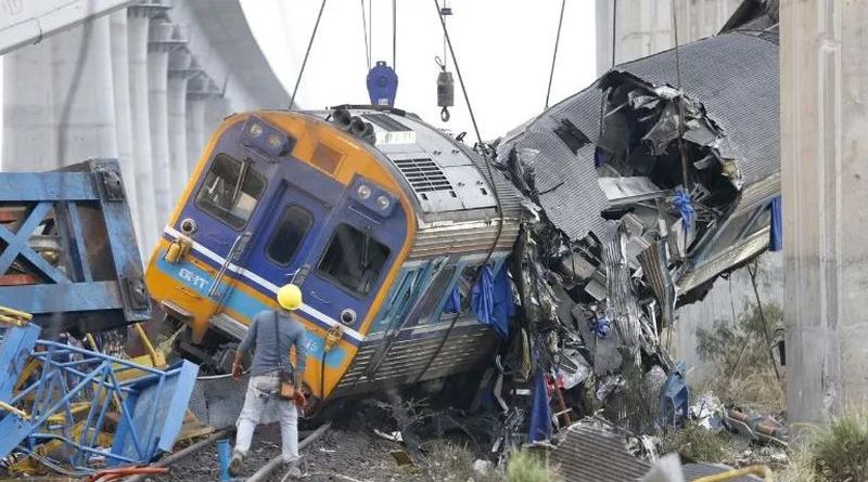 AL MENOS 32 MUERTOS TRAS CAÍDA DE GRÚA SOBRE TREN EN MOVIMIENTO EN TAILANDIA