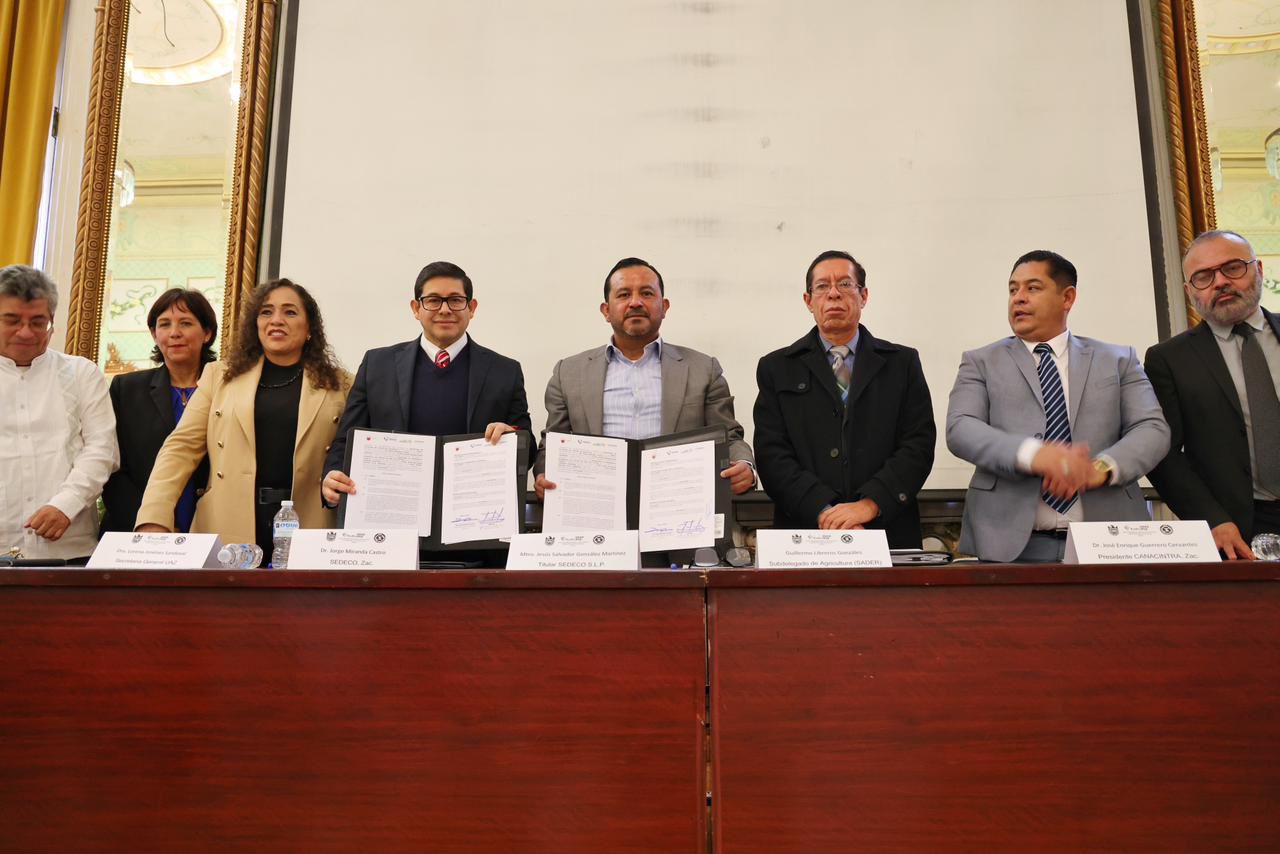 Jesús Salvador González Martínez, titular de la Secretaría, destacó que el acuerdo abre la puerta a proyectos estratégicos en sectores como el automotriz, electrodomésticos, tecnologías emergentes y minería con valor agregado, lo que favorecerá la generación de empleos mejor remunerados y un entorno más competitivo para nuevas industrias. El documento fue firmado por González Martínez en representación del Mandatario potosino y por Jorge Miranda Castro en representación del Gobierno de Zacatecas.