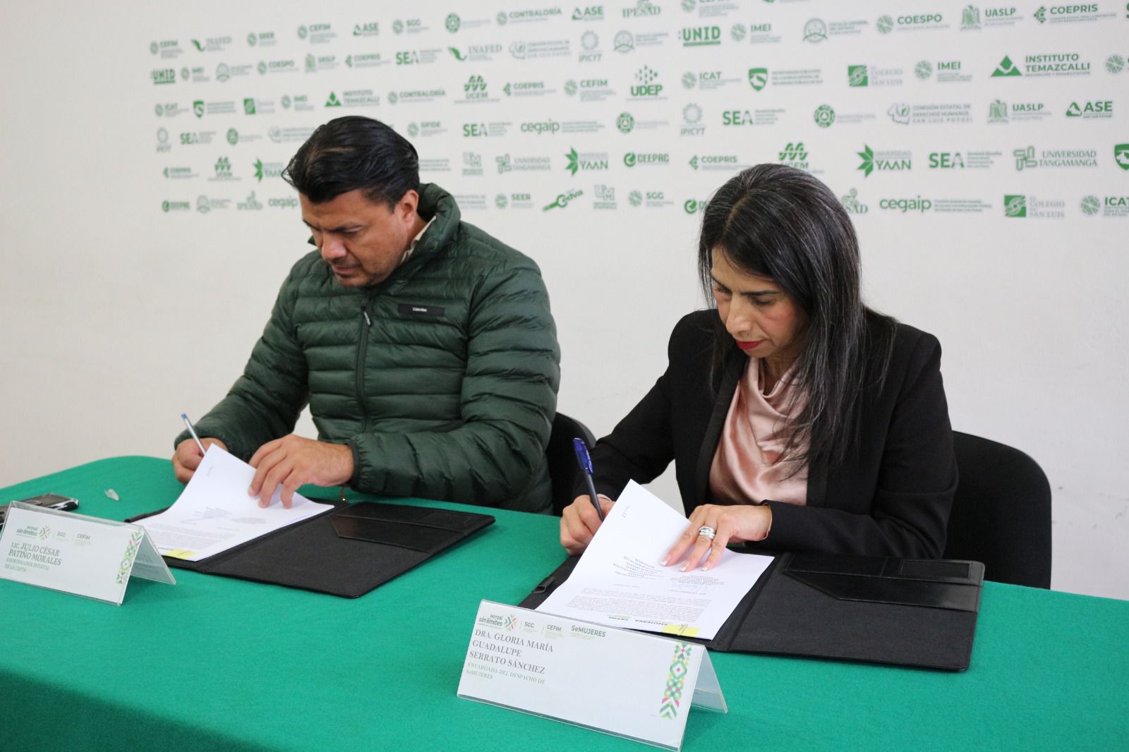 La Secretaría de las Mujeres e Igualdad Sustantiva (Semujeres) firmó un convenio de colaboración con la Coordinación Estatal para el Fortalecimiento Institucional de los Municipios (CEFIM) para acercar cursos y capacitaciones al funcionariado de los 59 municipios, con el propósito de fortalecer la prevención y atención de la violencia contra las mujeres. Esta acción se alinea con la política impulsada por el Gobernador Ricardo Gallardo Cardona, quien ha establecido como prioridad consolidar instituciones que operen sin límites en la construcción de entornos seguros para las potosinas.