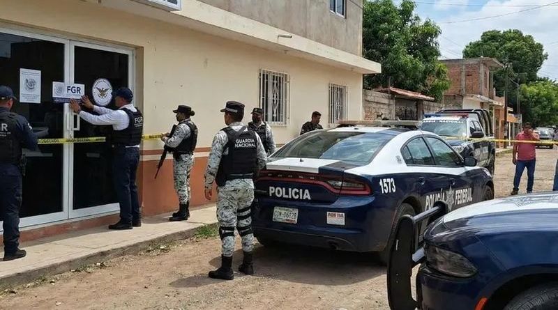 En las fachadas de los inmuebles intervenidos, el personal de la FGR colocó sellos de aseguramiento donde se especifica que la carpeta de investigación se sigue por el delito de «desaparición cometida por particulares».