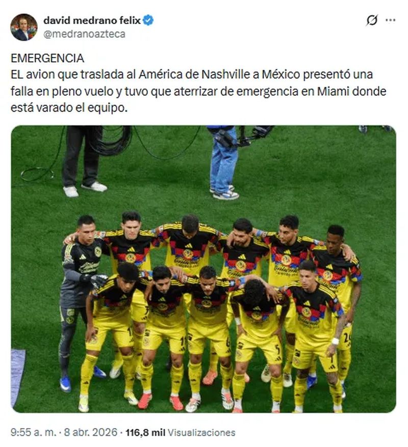 El incidente aéreo se suma a un momento deportivo complicado para las Águilas. Apenas un día antes, el equipo dirigido por André Jardine empató sin goles frente al Nashville en el partido de ida de los Cuartos de Final de la Concachampions, resultado que dejó sensaciones negativas por la falta de contundencia.