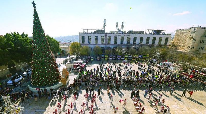 Al compás de tambores y bajo un cielo despejado, jóvenes palestinos desfilaron ayer en las calles de Belén, para dar inicio a la primera Navidad festiva después de dos años ensombrecidos por la guerra en Gaza.