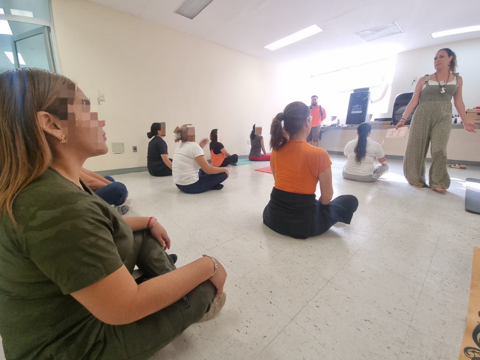 La titular de la Dirección General de Prevención y Reinserción Social, Carmen Concepción Villa Galarza, señaló que, entre las iniciativas destacadas, se realizó una “Master Class de Yoga Naranja” que contó con la participación de las instructoras Carla Madla y Miguel Hernández, quienes guiaron al grupo en diversas técnicas de relajación y fortalecimiento físico.