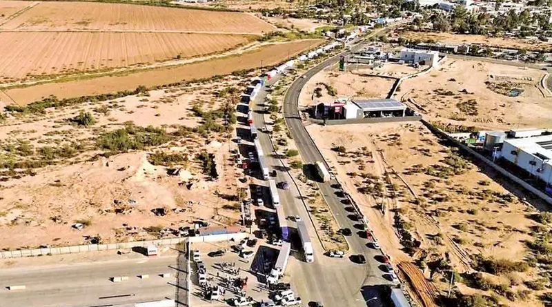 Por la aduana comercial llamada Puerta de Entrada Este de Calexico, entran y salen más de mil 800 camiones al día con productos e insumos de exportación e importación, algunos son productos perecederos por lo que urge una solución al bloqueo, además que mucha de la mercancía forma parte de una cadena logística mundial.