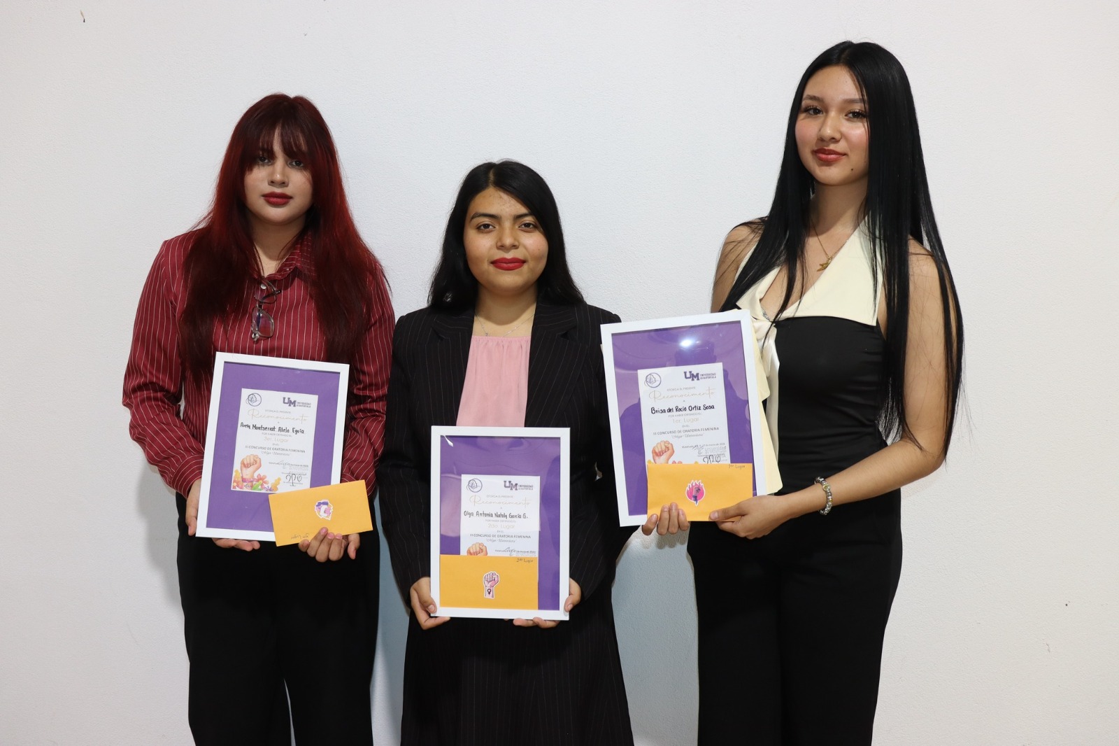 Al finalizar la participación de las estudiantes, el jurado calificador otorgó el Primer Lugar a Brisa del Roció Ortiz Sosa, Olga Antonia Nataly García Grimaldo, Segundo Lugar y Arely Montserrat Alejo Eguía , Tercer Lugar, todas ellas estudiantes de la Escuela de Derecho de la institución.