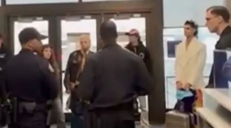 Al aterrizar, el grupo fue recibido por autoridades aeroportuarias estadounidenses. En otro video tomado por su equipo se puede ver a los artistas siendo retenidos e interrogados por agentes de seguridad mientras cuatro oficiales observan y controlan la zona.