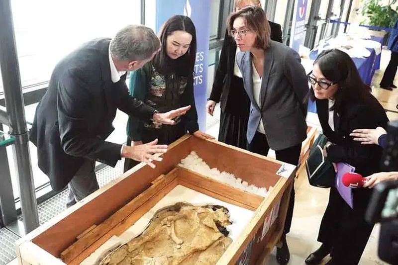 Autoridades del Ministerio de Economía y Finanzas francés devolvieron un lote de piezas con arte prehistórico mongol a la ministra de Cultura, Deportes, Turismo y Juventud de Mongolia.