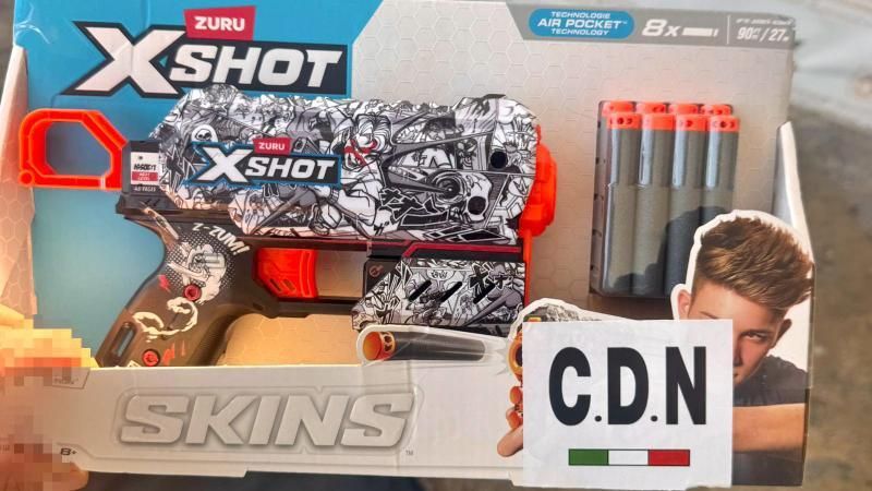 Cuatro sujetos fueron detenidos en Guadalupe, Nuevo León, cuando repartían juguetes bélicos a menores de edad con la leyenda de la organización criminal Cártel del Noreste (CDN).