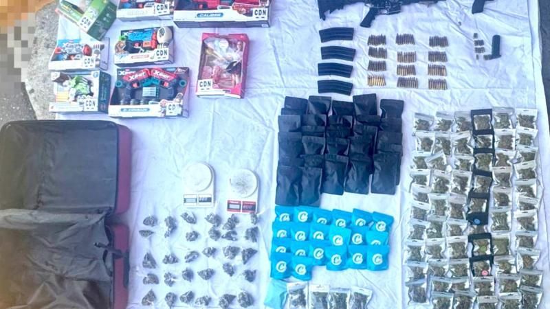 Al momento de su captura les decomisaron 144 dosis de hierba verde y seca similar a la marihuana, un arma de fuego calibre .223 con su cargador, un arma de fuego calibre .9 mm con su cargador, 120 cartuchos hábiles calibre .223, 17 cartuchos calibre .9 mm, 8 cajas con juguetes en su interior cada uno en su empaque con la leyenda CDN, dos básculas digitales, cuatro celulares y una maleta de viaje en color rojo.