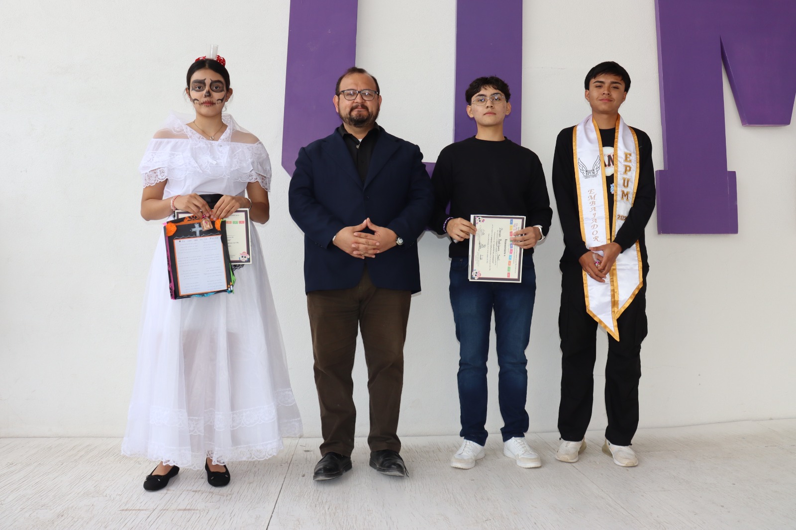 En la parte artística, los alumnos del Taller de Música interpretaron la melodía “Fantasmas” de Humbe, mientras que las alumnas del Taller de Danza presentaron “La Bruja”, del estado de Veracruz. Así mismo se llevó a cabo el Concurso de Calaverita Literaria, donde destacaron los trabajos de Saúl Barrón Rodríguez, Lauro Becerra Sauceda y Jesús Emiliano de los Santos Herrera del 1ero. “A”, Camila Silva Gallegos, Regina Oliva Vigil del 1ero. “B”, Sergio Alejandro Holguín Orozco, Naomi Orozco Velázquez, Dafne Yamileth de León Obregón del 4to. “A”, Juan Antonio Llanas Colunga, Perla Margarita García García, Melanye Alejandra Castillo García del 4to. “B”.