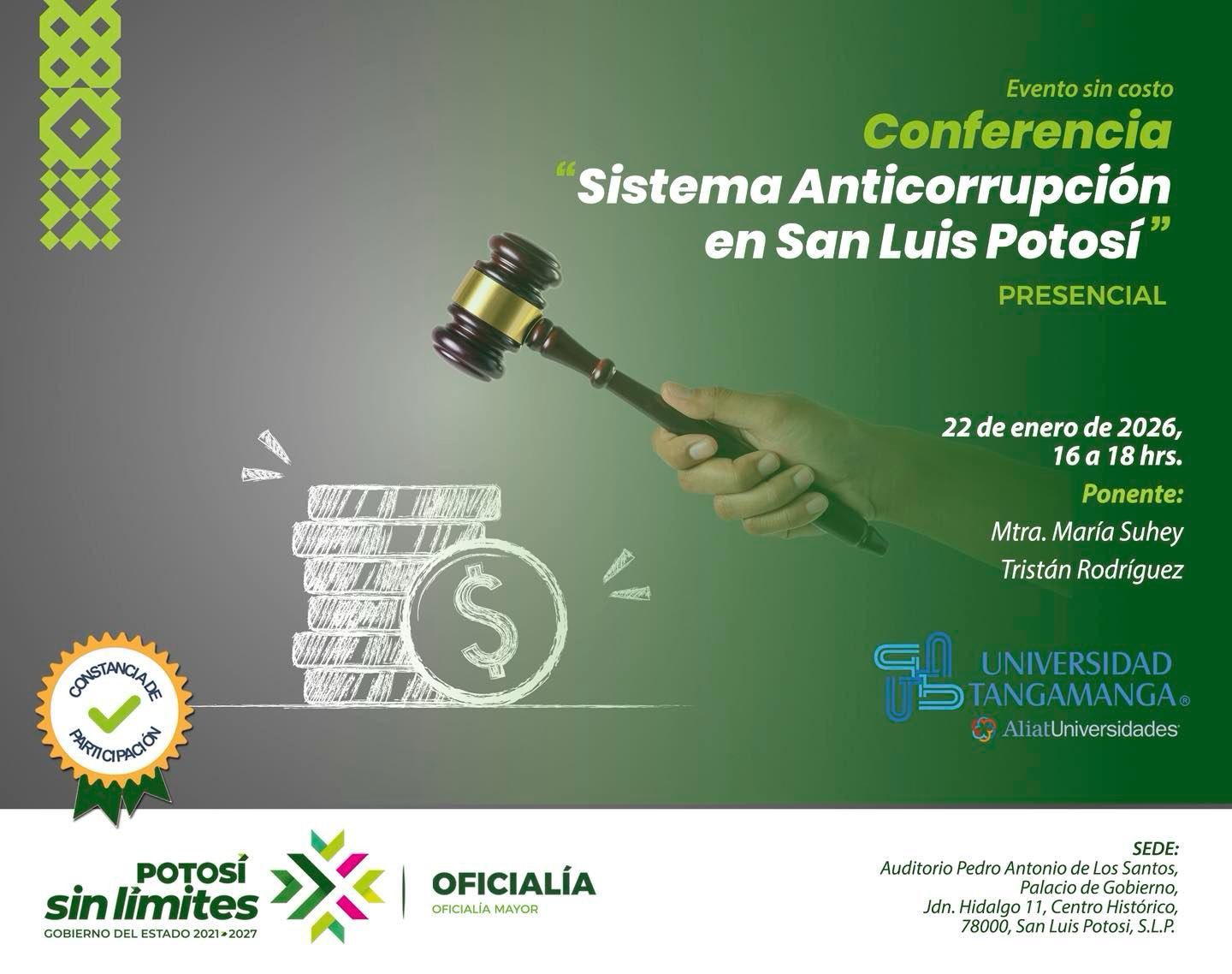 El Oficial Mayor, Noé Lara Enríquez, informó que durante enero se impartirán seis cursos y una conferencia magistral sobre el Sistema Anticorrupción en San Luis Potosí, con registro abierto. A través de esta estrategia, el Gobierno del Estado impulsa una profesionalización sin límites, enfocada en promover la integridad, agilizar procesos y ofrecer una atención más transparente y de mayor calidad.