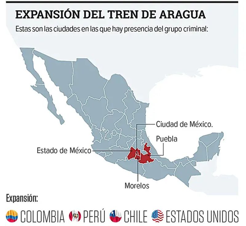 El Tren de Aragua se creó en la cárcel de Tocorón, Venezuela, hace más de una década. También opera en Colombia, Ecuador, Perú, Chile, Bolivia y Brasil. En Sudamérica se dedican, entre otros delitos, a la extorsión, secuestro, tráfico de migrantes, trata para explotación sexual, narcotráfico, minería ilegal, lavado, sicariato y tráfico de armas.