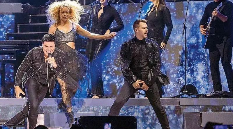 ¡Los verdaderos protagonistas de todo esto, son todos ustedes!”, dijo y tras el exceso de fiesta, cantó Si nos quedara poco tiempo, entre imágenes de relojes y otro look también en negro con un saco en destellos dorados.