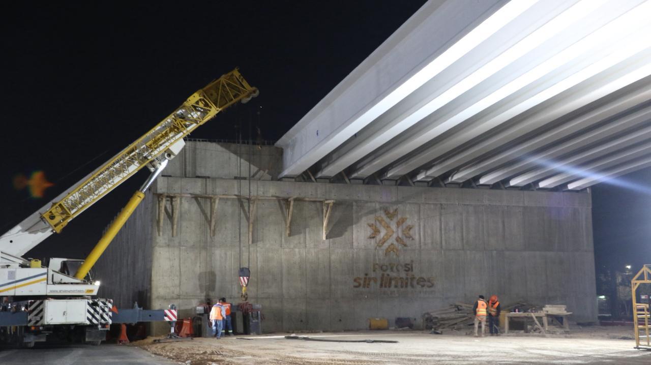 El Gobierno del Estado de San Luis Potosí, informa que la noche de este miércoles se llevará a cabo el montaje de trabes en el mega puente vehicular de Circuito Potosí y Valle de los Fantasmas, obra que registra avances importantes y que será entregada próximamente por el Gobernador Ricardo Gallardo Cardona, para fortalecer sin límites la movilidad en la zona metropolitana.