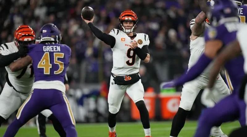 Joe Burrow lanzó dos pases de touchdown durante la segunda mitad en su regreso con Cincinnati, y los Bengals rompieron la racha de cinco victorias consecutivas de Baltimore al doblegar el jueves 32-14 a unos Ravens propensos a perder el balón en el Día de Acción de Gracias.