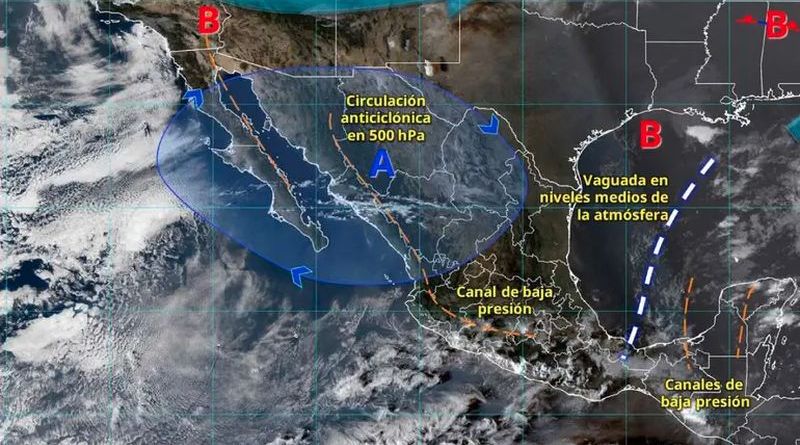 Mientras inestabilidad en niveles altos de la atmosfera, una vaguada en niveles medios extendida sobre la península de Yucatán, aunado a un canal de baja presión en el sureste de México y el ingreso de humedad proveniente del Golfo de México y mar Caribe, ocasionarán lluvias y chubascos con posibles descargas eléctricas.