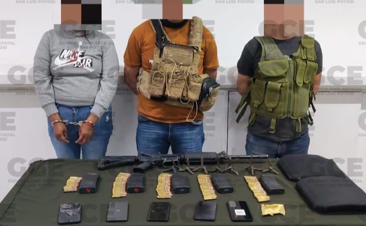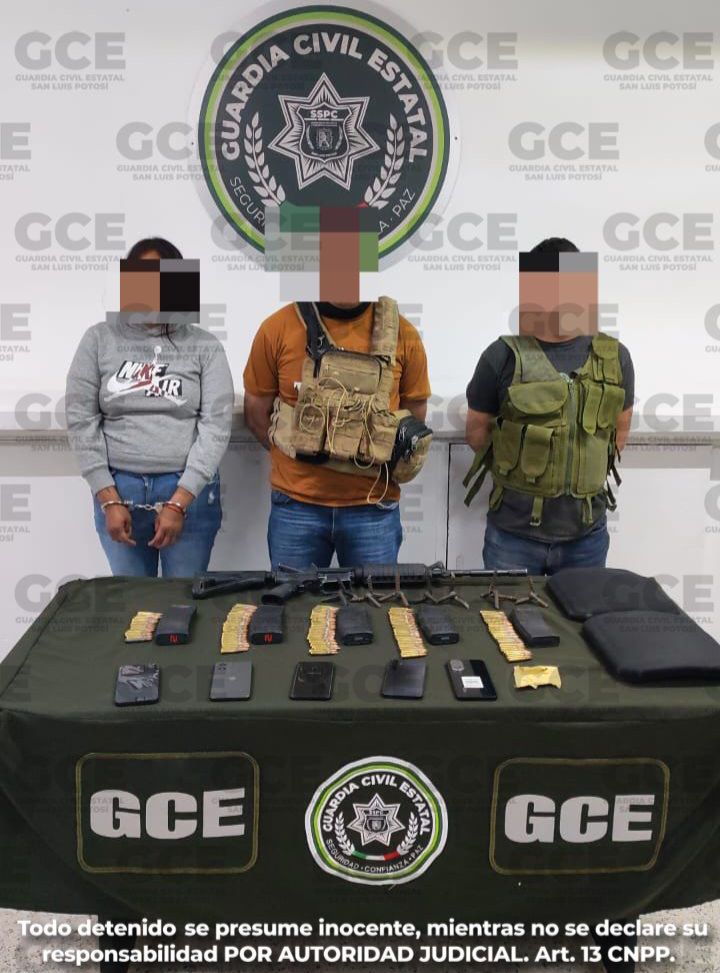 Elementos de la Guardia Civil Estatal adscritos a la región Altiplano, detuvieron a Diego “N” de 33 años, alias el “Poblano”, originario de Veracruz; Cristian “N” de 28 años, también originario del estado de Veracruz y a Karla “N” de 28 años, originaria de Cedral, quienes fueron detenidos tras una persecución luego de que los presuntos realizaran disparos de arma de fuego en contra de las fuerzas del orden.