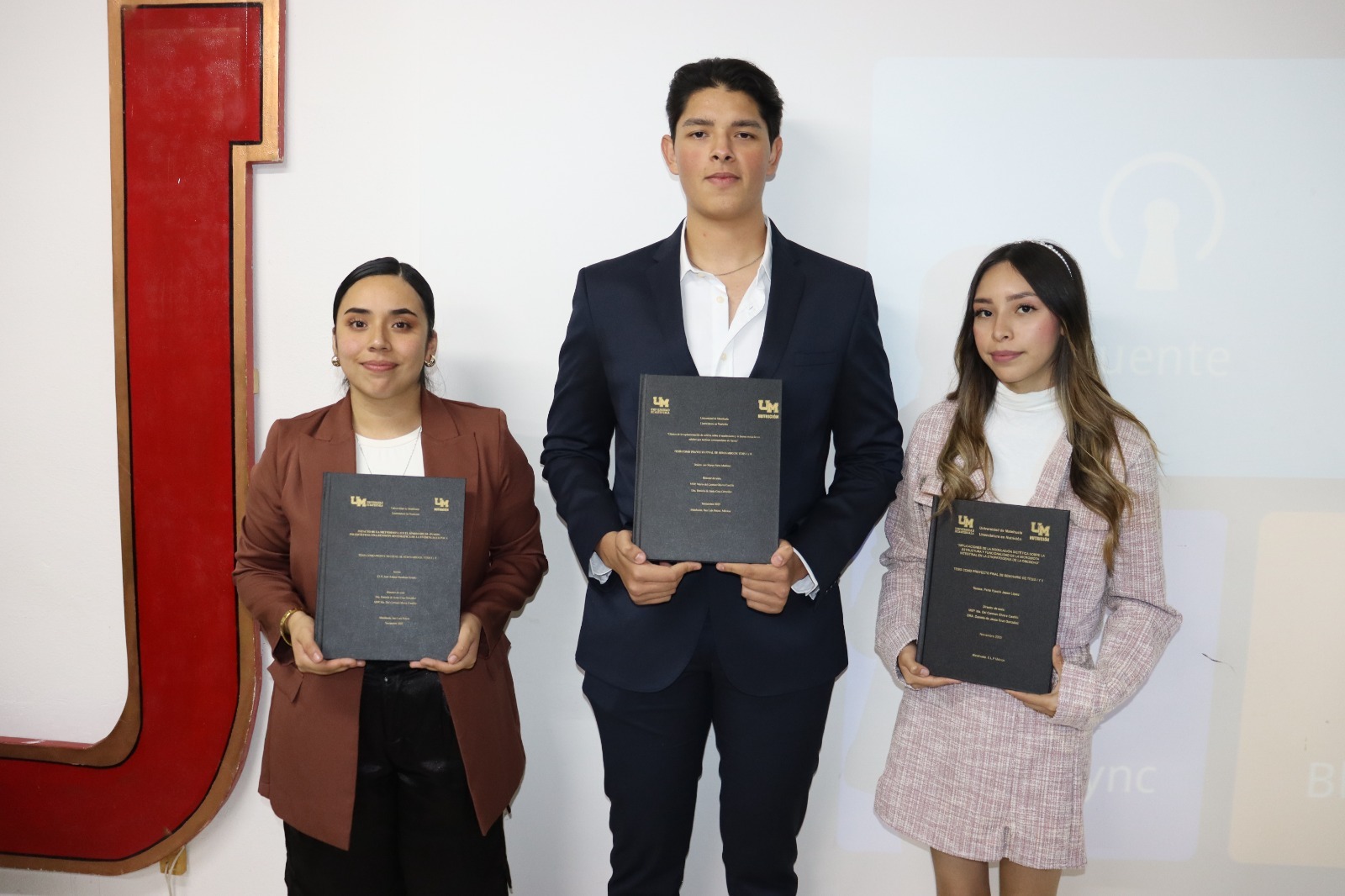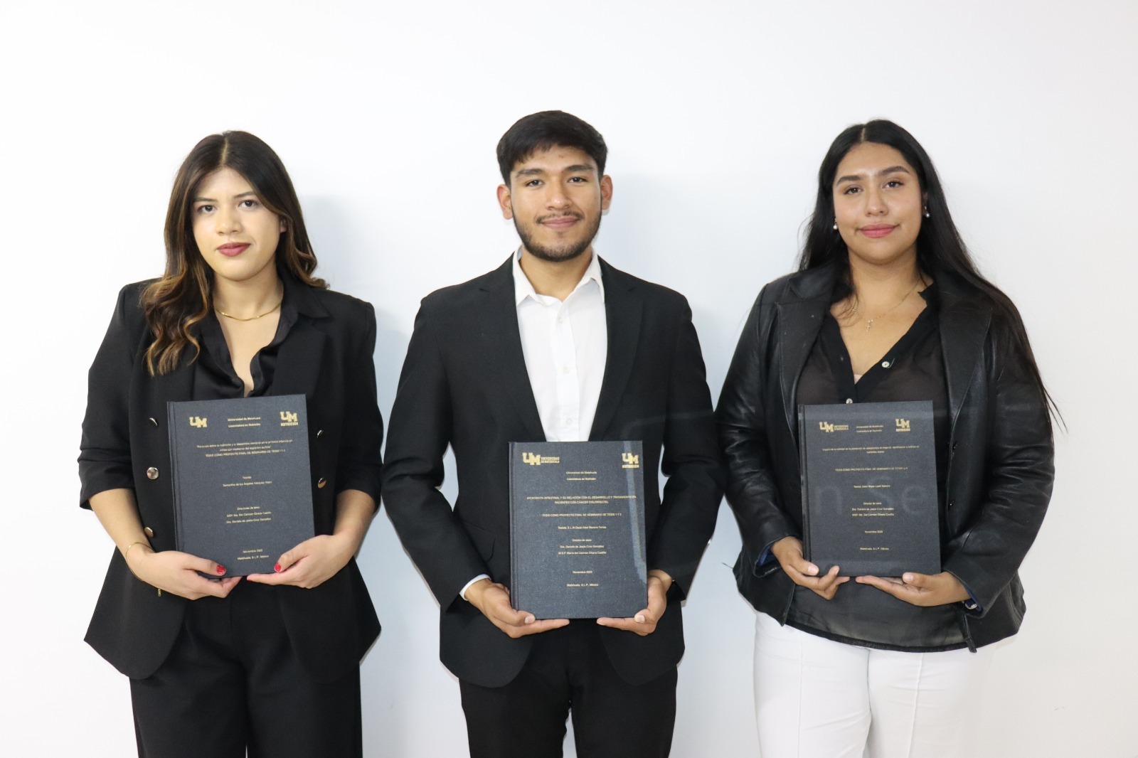 Las tesis fueron presentadas por los estudiantes: Mayra Judith Leyva Hernández, Jan Marco Parra Martínez, Arely Jazmín Saldaña Gómez, Perla Yosselin Jasso López, Jimena Guadalupe Morán Martínez, Óscar Abel Moreno Torres, Yuslavia Mildred Robledo Eguía, Brayan Alexander Acevedo Barajas, Samantha De Los Ángeles Vázquez Nieto, Rubí Estefanía Martínez Domínguez, Jade Johana Mendoza Serrato, Lizeth Nahomi Debo Rojas, Cristina Loera Rangel, Isaías Jacob López Molina y Lesly Sofía Silva Díaz, quienes culminan una etapa fundamental de su formación académica.