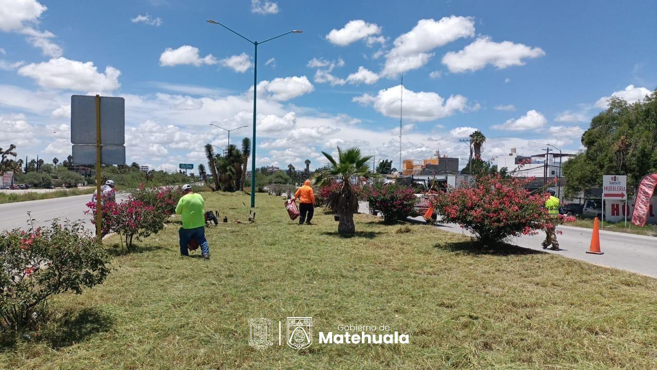 El Gobierno Municipal de Matehuala, que encabeza el presidente Raúl Ortega Rodríguez, a través del Departamento de Ecología dirigido por Iván López Sánchez, continúa reforzando los trabajos de mantenimiento en el Boulevard Turístico, así como en diversas áreas verdes de la ciudad.