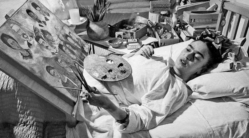 En una fotografía de Raúl Anaya, captada en 1953, se observa a la pintora Frida Kahlo (1907-1954) reposando en una cama del Hospital Inglés. Su expresión muestra agotamiento y cierto hartazgo, mientras sostiene en la mano izquierda un cigarrillo.