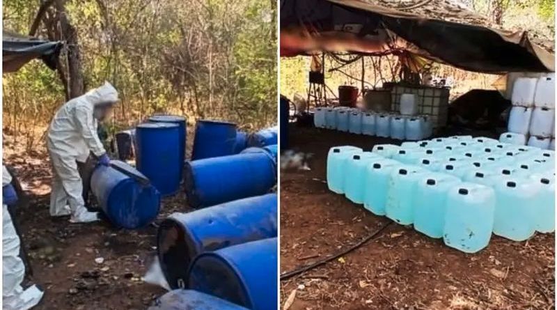 En Cosalá se destruyó un área de concentración con mil 550 litros y 275 kilos de sustancias químicas”, detalló García Harfuch, en su cuenta de X.