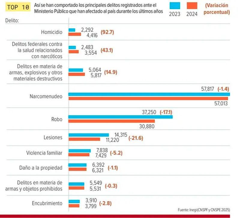 Sin embargo, en las carreteras y puentes de jurisdicción estatal, las corporaciones de seguridad pública locales registraron dos mil 686 robos y asaltos, lo que en comparación con 2023 representa un incremento de 71.4% en dichos delitos.