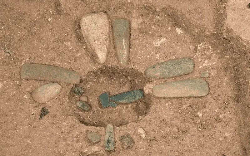 El equipo piensa que se colocaron todos los elementos a manera de ofrenda y después cubrieron todo con tierra y arena, creando una enorme tumba. Los resultados arrojados por radiocarbono estiman que el escondite data del 900-845 a. C., pero debió seguir siendo un lugar concurrido en el que posteriormente se depositaron los objetos de Jade.