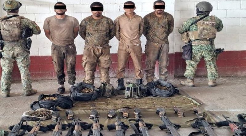 En una acción simultánea derivada de los recorridos de vigilancia, el personal militar ubicó a dos personas más, entre ellas un menor de edad. Los detenidos portaban seis armas largas, 40 cargadores, 640 cartuchos y tres chalecos tácticos.