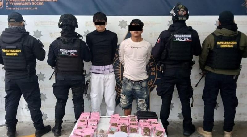 El primero de los hechos se registró en la colonia Valles de Guadalupe en el cruce de Laguna de Término e Islas de Cedros cuando los uniformados realizaban recorridos de disuasión delictiva y se percataron que un joven entregaba mercancía a otro.