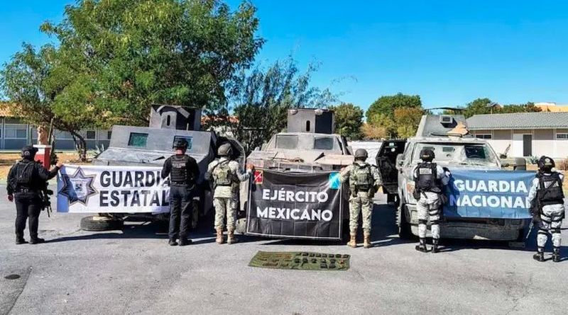 Elementos del Ejército Mexicano y de la Guardia Estatal aseguraron tres vehículos con blindaje artesanal, conocidos como “monstruos”, en una zona de Camargo, Tamaulipas, reconocida por los constantes enfrentamientos entre grupos delictivos.