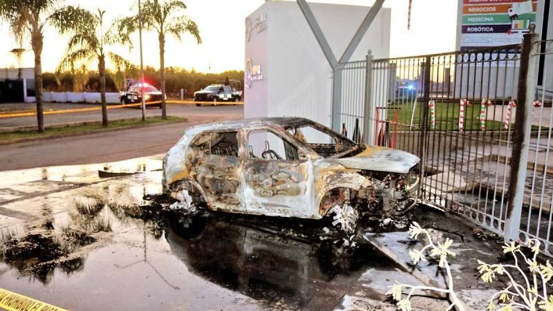 Sujetos armados impactaron un vehículo contra el acceso principal de un colegio y luego lo incendiaron, provocando daños materiales en la fachada del inmueble. Es la tercera institución educativa atacada las últimas semanas en Culiacán, Sinaloa.