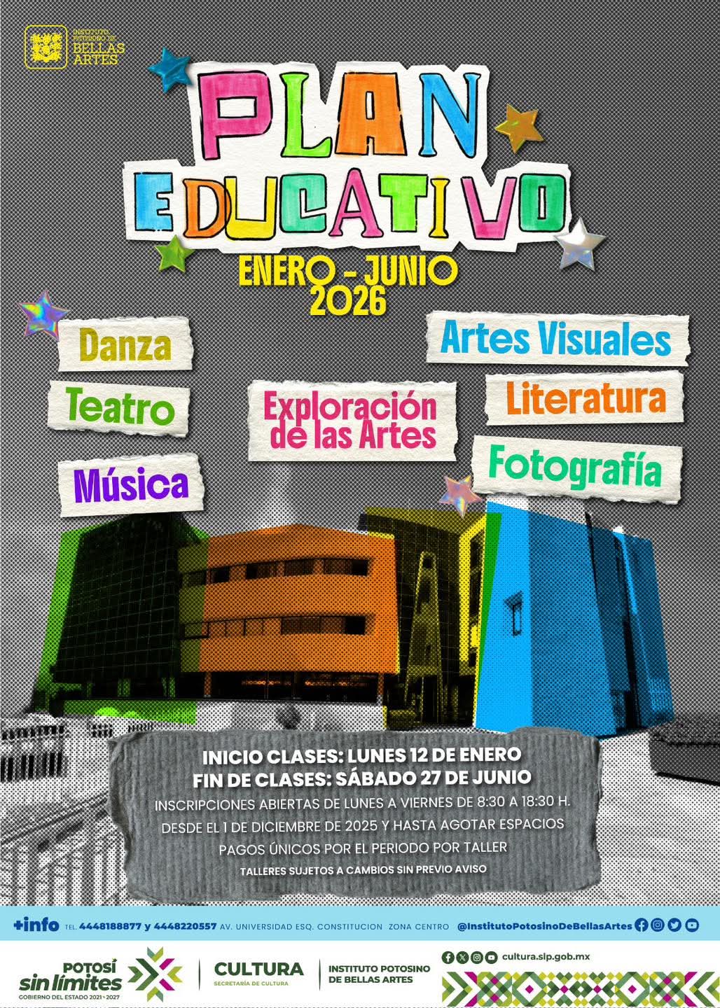 El Instituto Potosino de Bellas Artes (IPBA) abre inscripciones para el semestre enero-junio de 2026, para seguir brindando acceso a las y los potosinos a la educación artística y cultural, con el respaldo sin límites que el Gobernador Ricardo Gallardo Cardona, brinda a nuevos artistas y creadores.