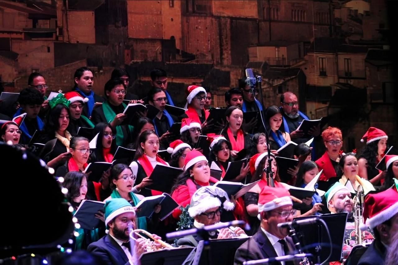 La Orquesta Sinfónica de San Luis Potosí presentó el concierto navideño en el Teatro de la Paz, bajo la dirección de Enrique Barrios, como parte de las actividades culturales que preparo el Gobierno del Estado, encabezado por Ricardo Gallardo Cardona, a través de la Secretaría de Cultura (Secult) para que las familias potosinas y visitantes disfruten sin límites.