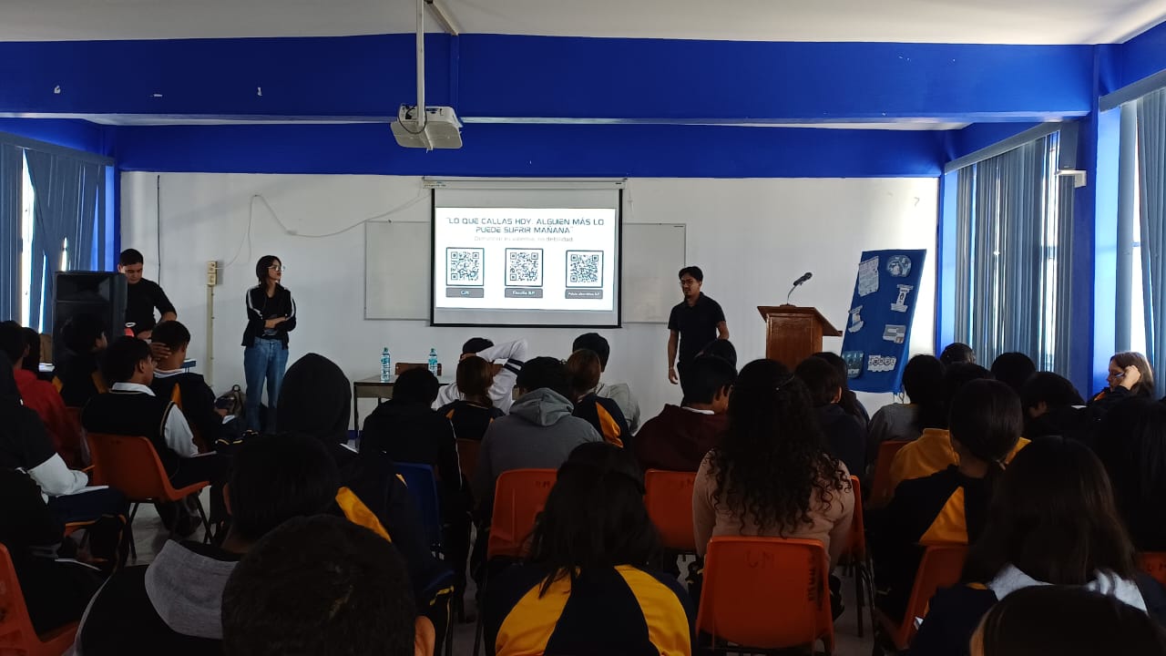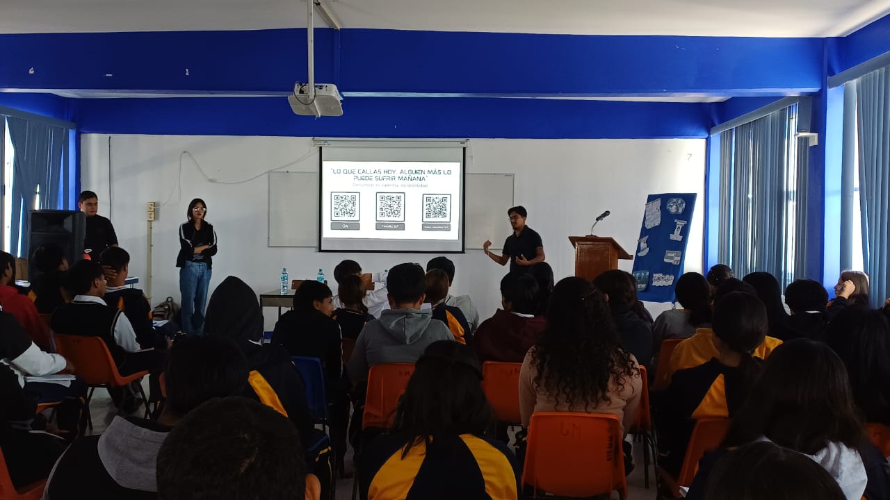 Como parte de las actividades de extensión de la Licenciatura en Criminología de la Universidad de Matehuala, alumnos del cuarto cuatrimestre participaron como ponentes en el Centro de Estudios de Bachillerato 5/11 “Prof. Lorenzo Coronado Bouley” donde abordaron el tema de la prevención de ciberdelitos.