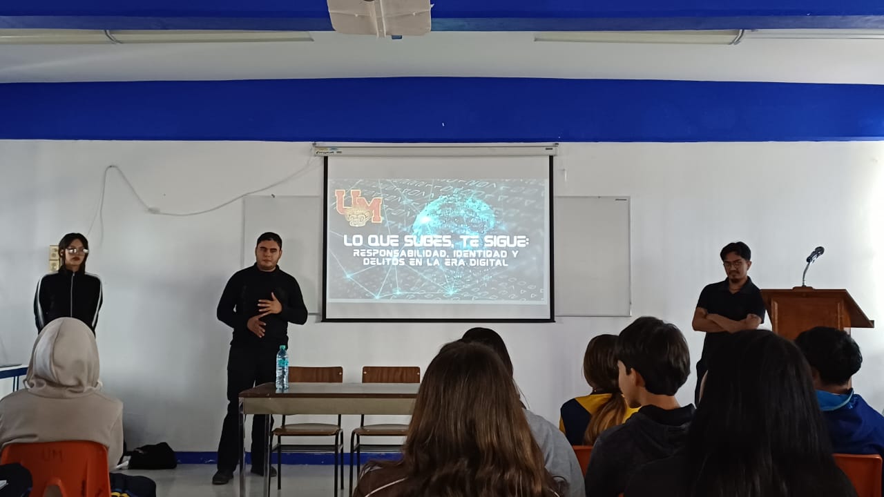 La plática dirigida a estudiantes y titulada “Lo que subes, te sigue: responsabilidad, identidad y delitos en la era digital” tuvo como finalidad crear conciencia de los peligros existentes en el ciberespacio y se abordaron temas como la huella digital, el grooming, la práctica del sexting, el porno de venganza y la sextorsión.