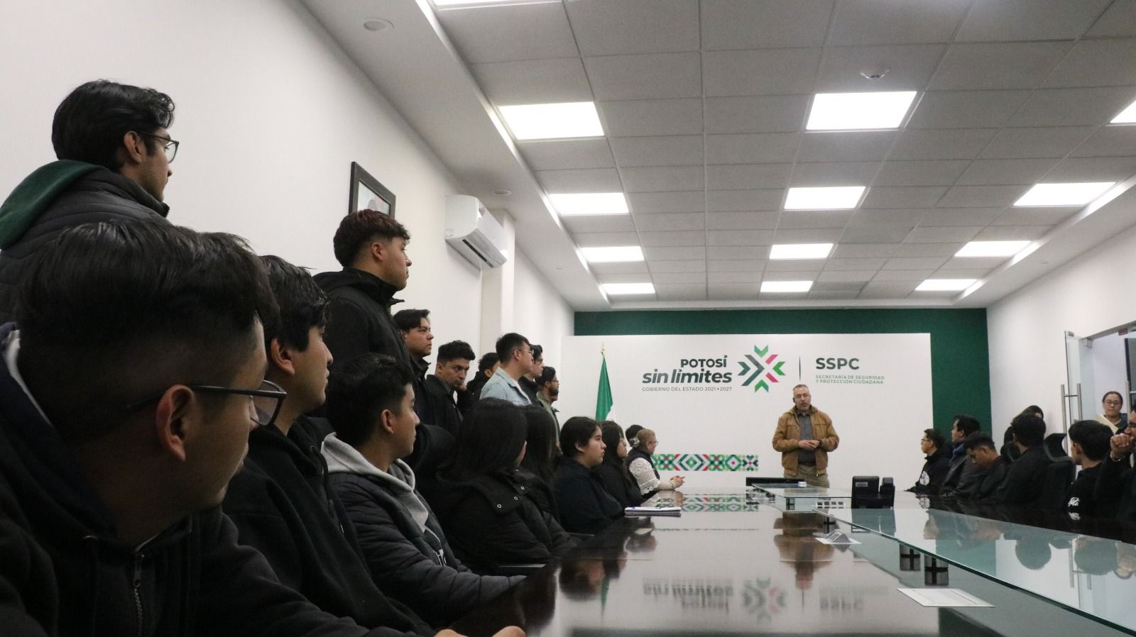Con el objetivo de acercar a las nuevas generaciones al uso de la tecnología aplicada a la seguridad pública, la Secretaría de Seguridad y Protección Ciudadana del Estado recibió en las instalaciones del C5i2 a un grupo de 35 estudiantes de Ingeniería en Sistemas Computacionales del Instituto Tecnológico de San Luis Potosí.