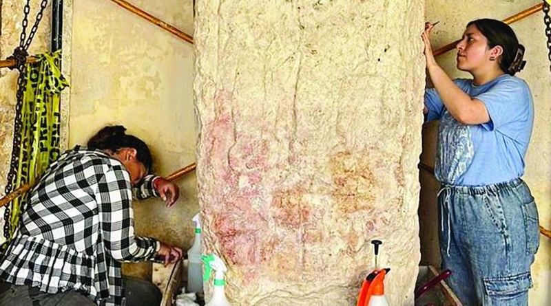 El monumento escultórico identificado como Estela 46 se exhibe por primera vez en el Museo de Arquitectura Maya, Baluarte de la Soledad, en Campeche, luego de que especialistas del Instituto Nacional de Antropología e Historia (INAH) culminaran el proceso de conservación-restauración.