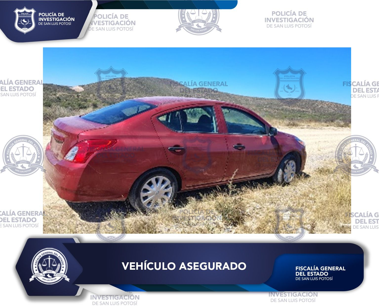La Fiscalía General del Estado de San Luis Potosí (FGESLP), a través de la Policía de Investigación (PDI), realizó el aseguramiento de un vehículo marca Nissan, color rojo, sin placas de circulación y con número de serie no visible, el cual se encontraba en aparente estado de abandono.