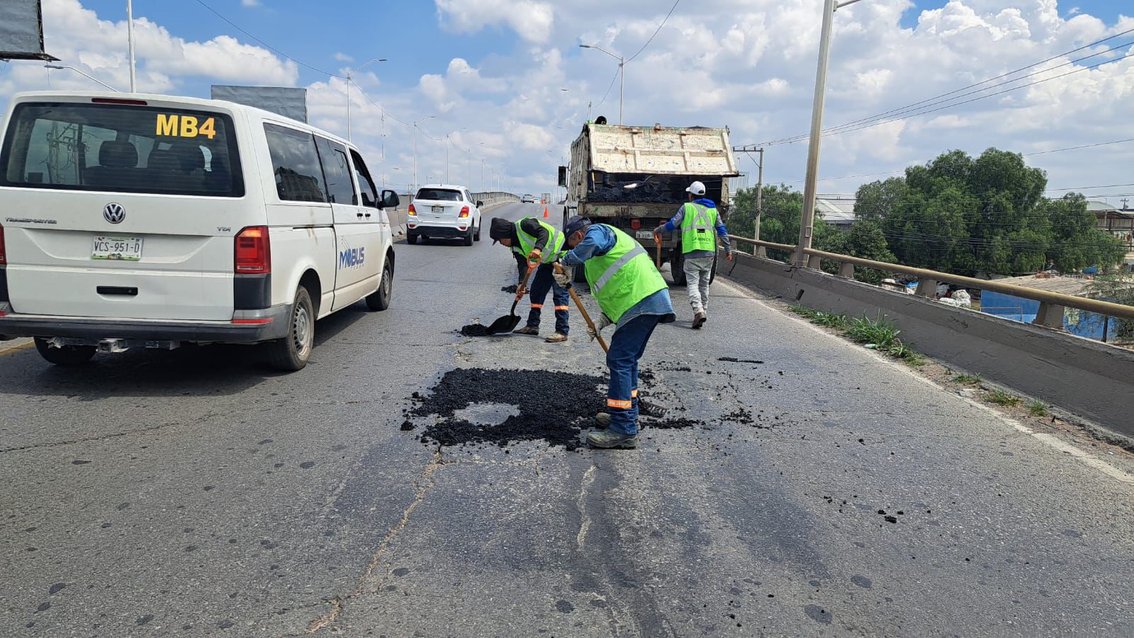 • Las cuadrillas de la JEC ejecutan acciones de bacheo, retiro de maleza, limpieza de basura, escombro y tierra en carriles centrales y laterales.