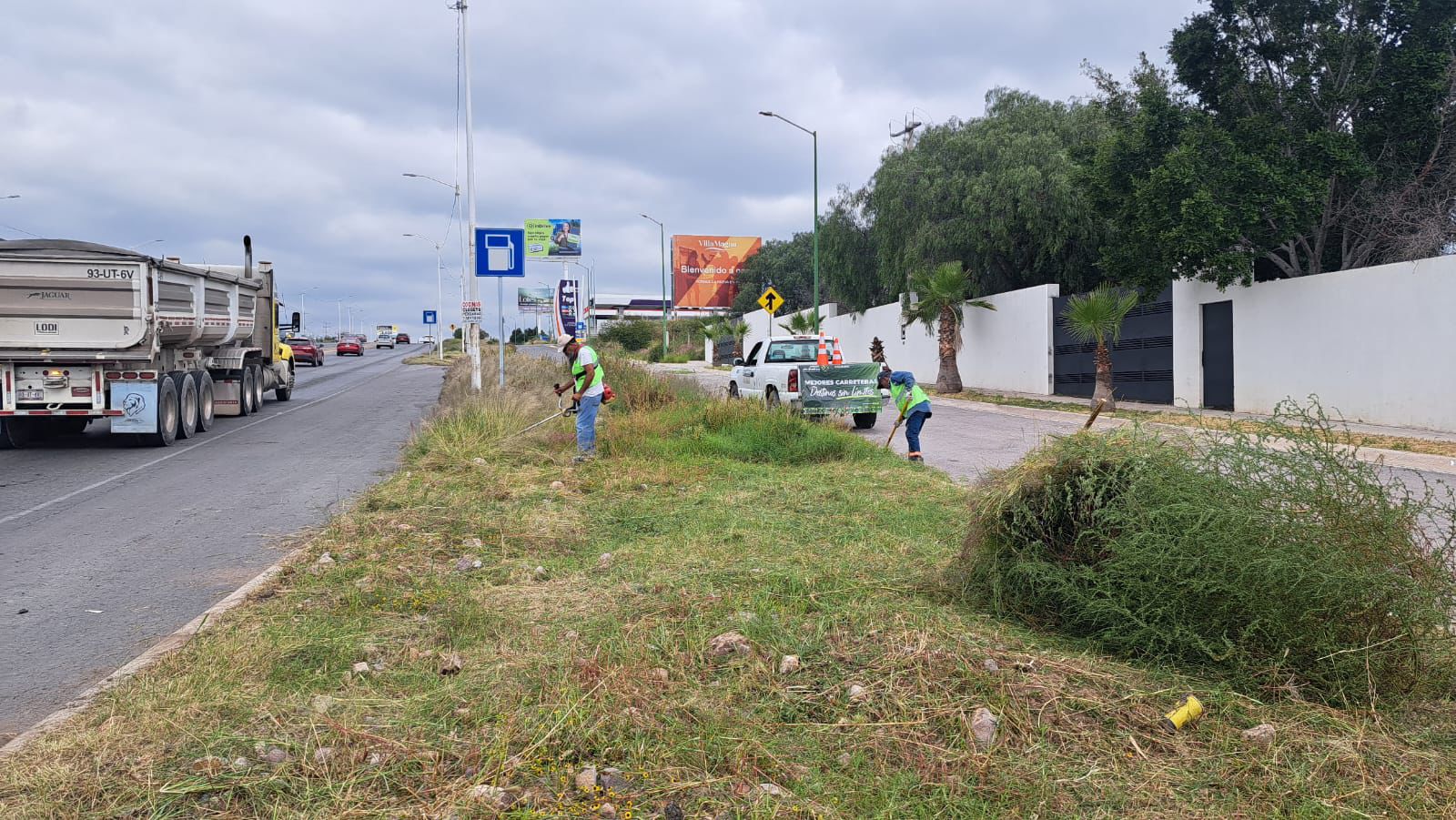 La Junta Estatal de Caminos de San Luis Potosí (JEC) fortalece las acciones de conservación del Circuito Potosí, de la Carretera Matehuala a la de Zacatecas, donde las cuadrillas de la dependencia ejecutan acciones de bacheo, retiro de maleza, limpieza de basura, escombro y tierra en carriles centrales y laterales de la superficie de rodamiento.