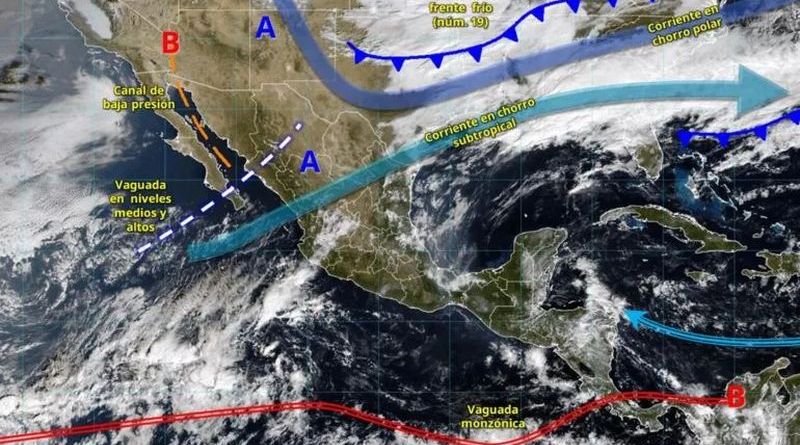 El Servicio Meteorológico Nacional informó que el frente frío número 19 ingresará este domingo al norte del país y, en interacción con una vaguada y canales de baja presión, provocará lluvias fuertes, descenso de temperatura y evento de “Norte” en entidades del norte, noreste, oriente, centro, sur y sureste de México. Las precipitaciones se concentrarán principalmente en la Huasteca, el oriente del país, Oaxaca, Chiapas, Tabasco y la península de Yucatán.