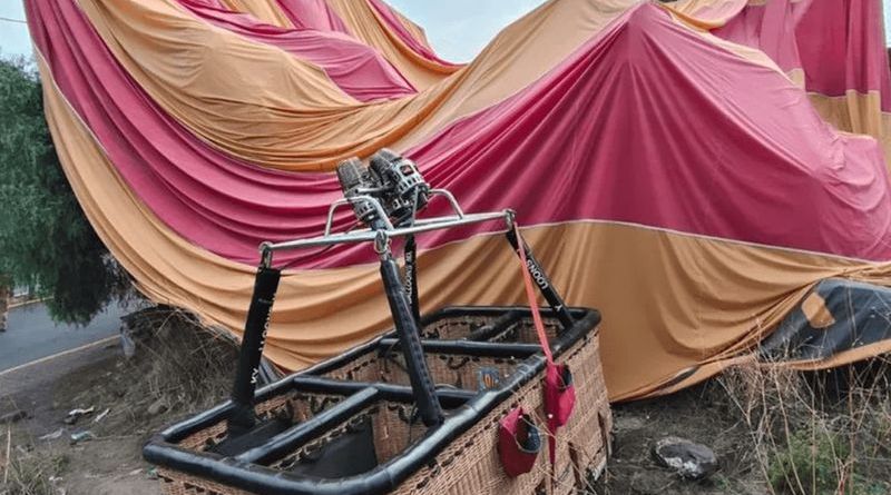 GLOBO AEROSTÁTICO CAE EN EL VALLE DE TEOTIHUACÁN; DOS TURISTAS RESULTAN HERIDOS