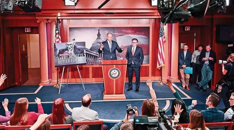 No estamos de buen humor aquí en el Capitolio, es un día sombrío. Hoy (ayer) marca el primer día en que los trabajadores federales recibirán un cheque de pago parcial”, dijo el presidente republicano de la Cámara de Representantes, Mike Johnson, en una conferencia de prensa.