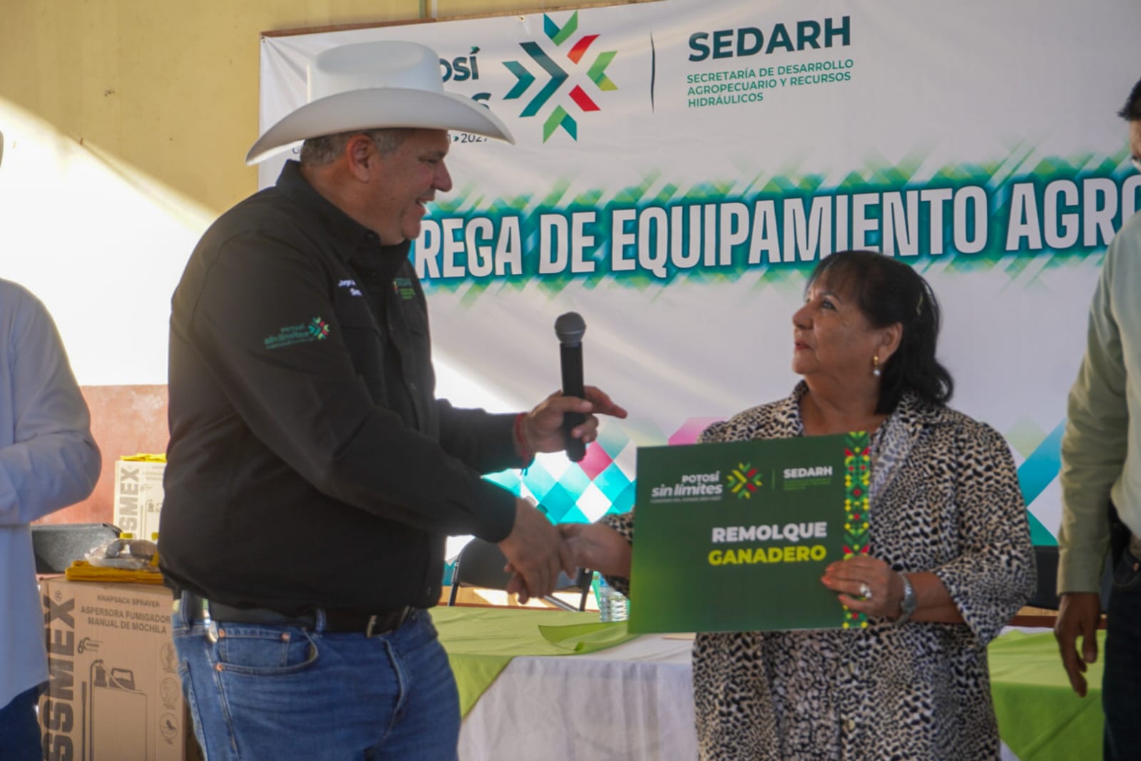 - Con una inversión superior a 1.94 millones de pesos, el Gobierno de San Luis Potosí entregó cerca de 300 paquetes de herramientas y remolques ganaderos a productores de seis municipios de la región.