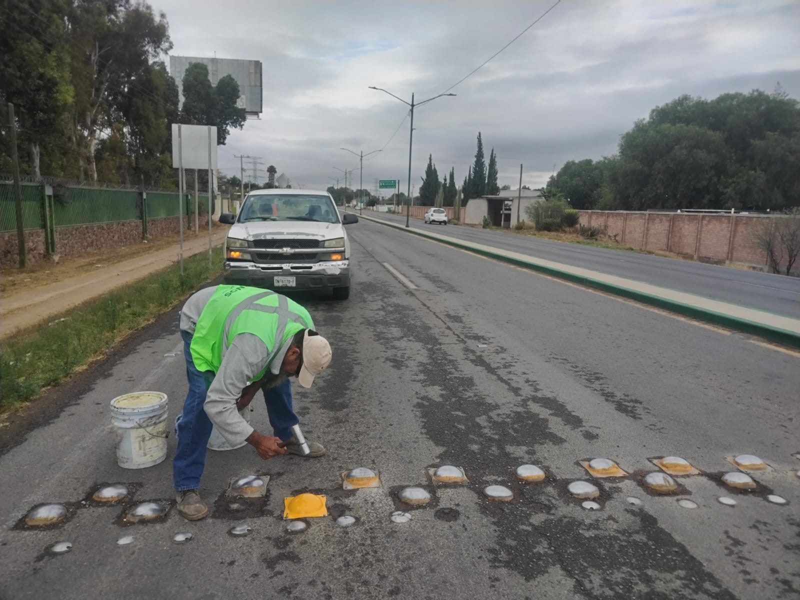 El Gobierno del Estado, a través de la Junta Estatal de Caminos (JEC), realiza trabajos de conservación en la ruta hacia el Aeropuerto Internacional de San Luis Potosí, con acciones de pintura en topes, colocación de bollas y limpieza de laterales, para garantizar traslados más seguros, eficientes y cómodos.