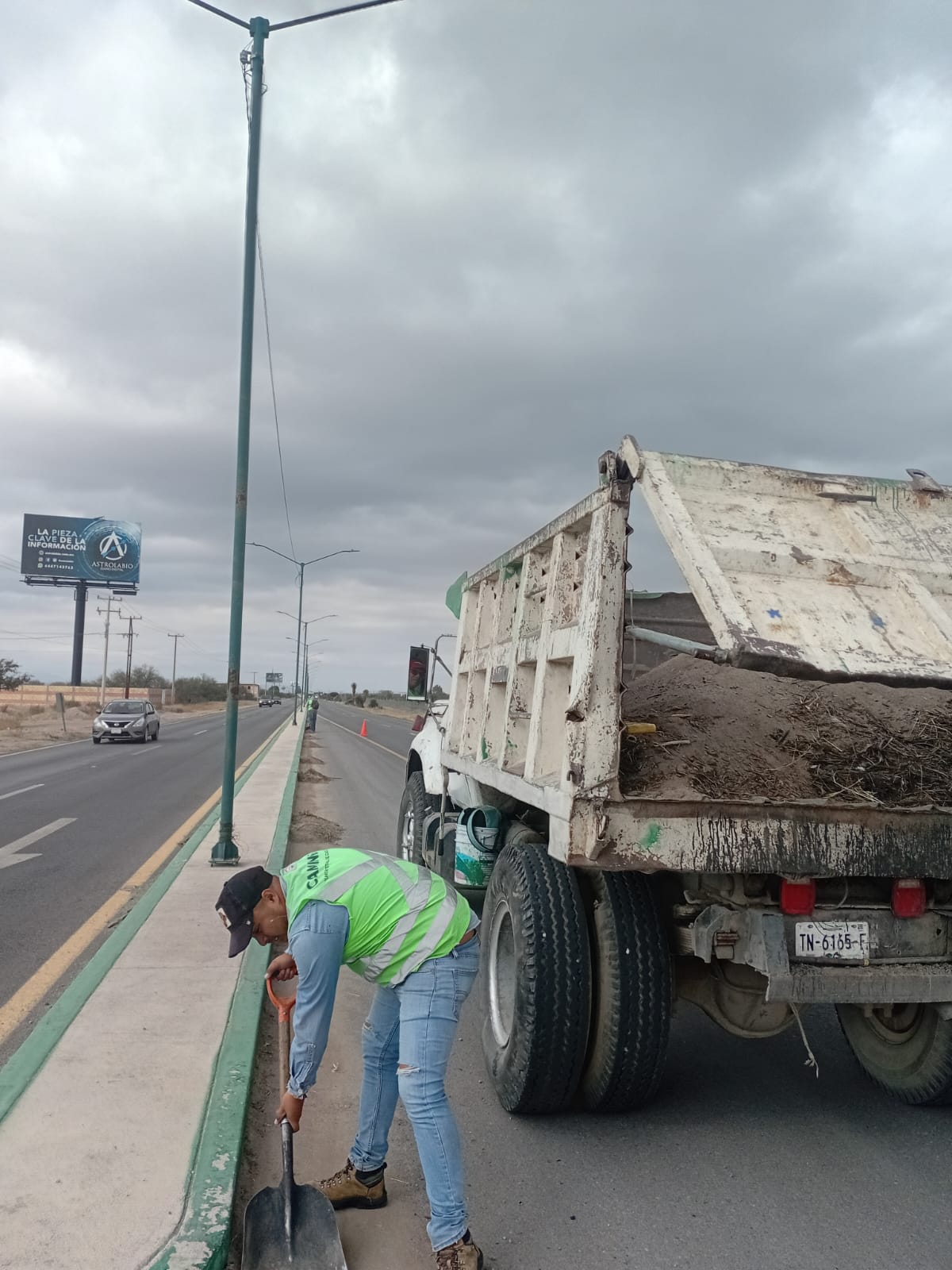 • Con acciones de mantenimiento se le da atención a una de las principales rutas de acceso, usada por el turismo nacional e internacional que visita San Luis Potosí.