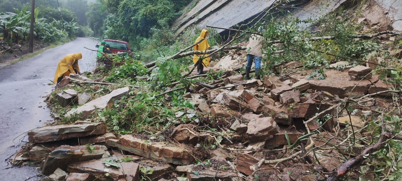 GOBIERNO ESTATAL RETIRA DERRUMBES POR LLUVIAS EN CARRETERAS