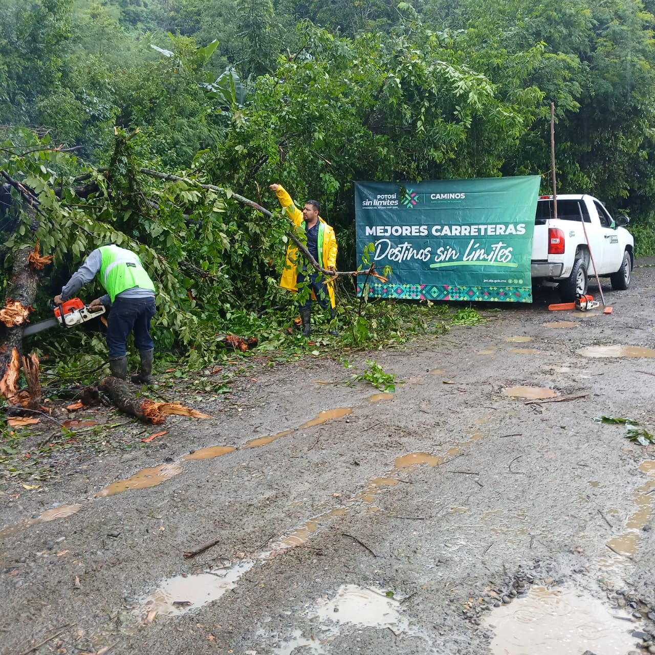 El director de la Junta Estatal de Caminos, Francisco Reyes Novelo, informó que, por instrucción del Gobernador del Estado Ricardo Gallardo Cardona, hay cuadrillas de la dependencia trabajando en los caminos que han reportado daños, como en la sierra de Aquismón, en el eje carretero Xolol Tampamolón – Tanquián a la altura del basurero, así como en el Tampamolón -Axtla, Axtla – Coxcatlán, Coxcatlán – Huehuetlán y Huehuetlán – Tancanhuitz.